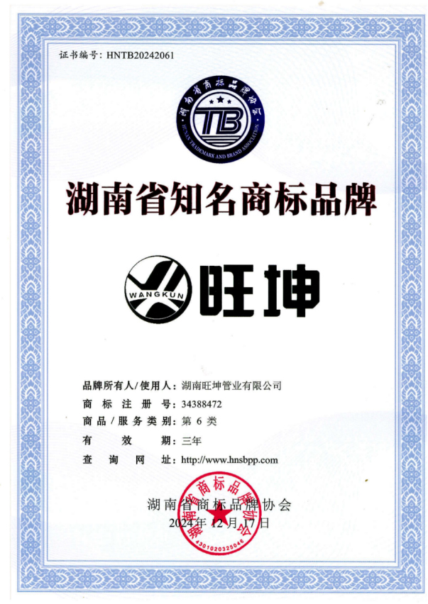 旺坤管业集上述三大实力于一身,其营销中心坐落于湖南省长沙市天心区新园路37号天经国际智能产业园2栋602号,现代化生产基地则位于湖南省湘潭市雨湖区,具备规模化、智能化的生产能力。